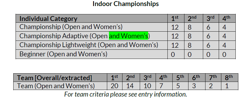 BUCS points are available for all championship categories excluding the 250m sprint.