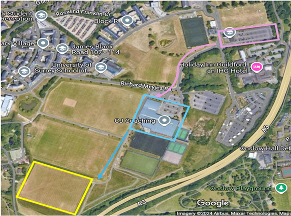See below for public transport links from Guildford Station to Surrey Sports Park: