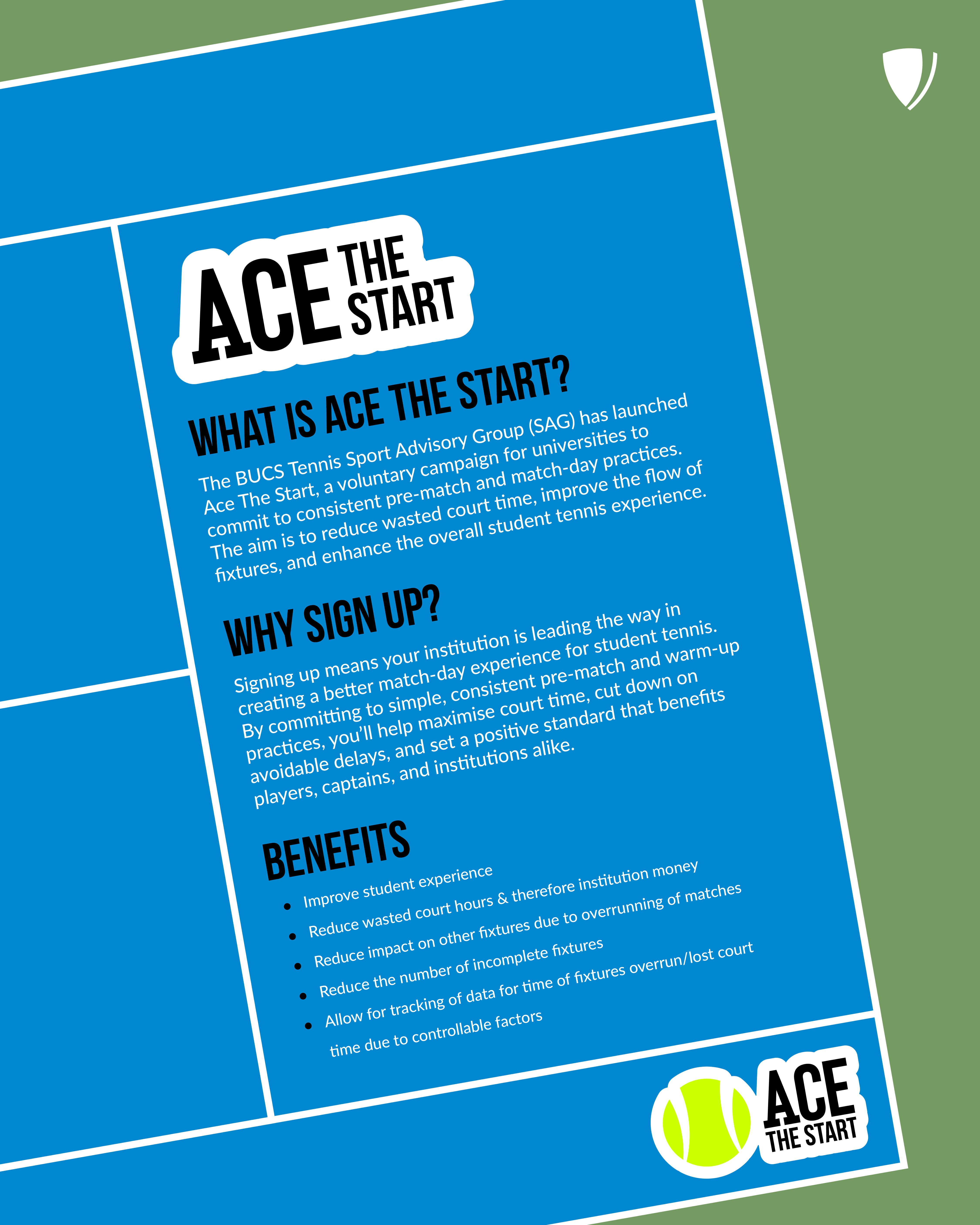 Signing up means your institution is leading the way in creating a better match-day experience for student tennis. By committing to simple, consistent pre-match and warm-up practices, you’ll help maximise court time, cut down on avoidable delays, and set a positive standard that benefits players, captains, and institutions alike.